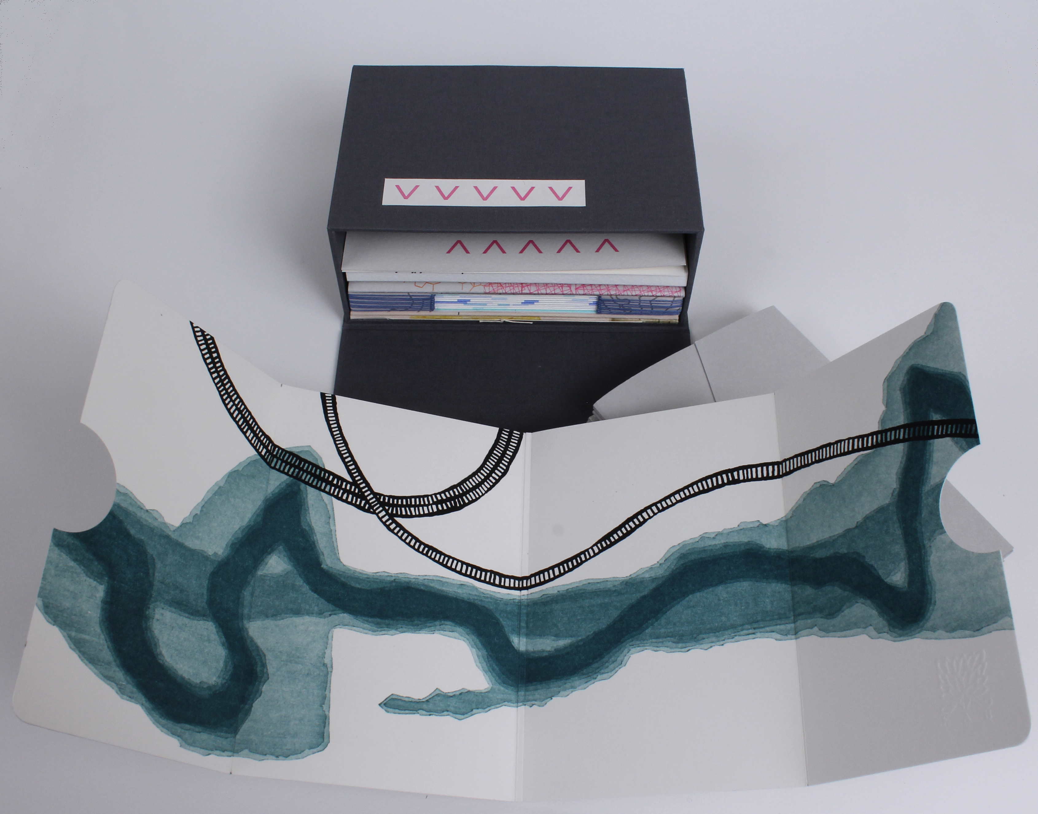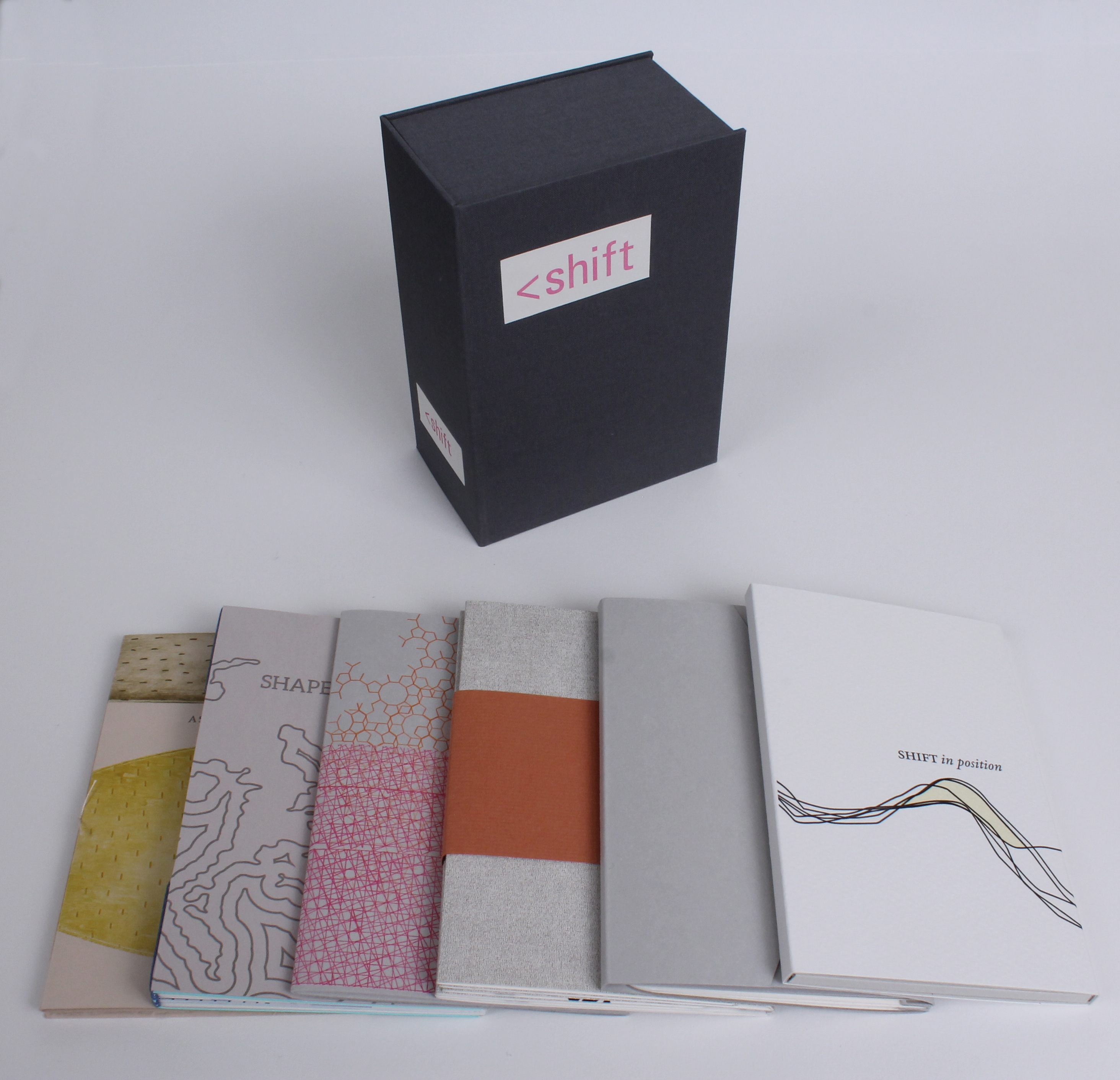 Shift (2014)is a set of five books that were Shift-lab’s inaugural project as a collaborative group. Each artist created a book of identical dimensions with the theme of shift, a word that plays a fundamental part of our practice as artists and printmakers.